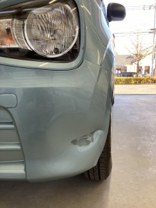 アルト フロントバンパーへこみ修理です。
